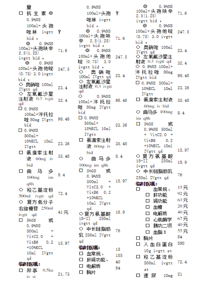 1.?必須復(fù)查的檢查項(xiàng)目:胸片,血常規(guī)、肝腎功能、電 解質(zhì)。